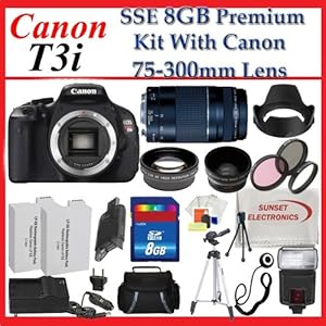 Best Prices Canon EOS Rebel T3i (600d) SLR Digital Camera w/ Canon 75-300mm Lens, 3 Extra Lens, 2x Extended Life Batteries, 8gb Sdhc Memory Card, Soft Carrying Cases, Tripod & Much More !!